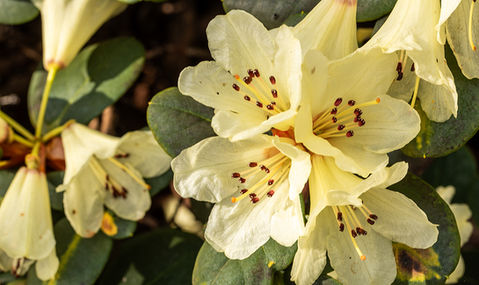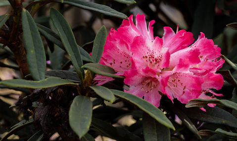 Helaas voor velen van ons een stukje rijden om te bekijken maar Henri heeft rododendronzaad van over de hele wereld bemachtigt en de planten in zijn tuin staan er dit jaar ook weer prachtig bij. Deze foto's zijn van zijn grootbladigen en de Camellia.